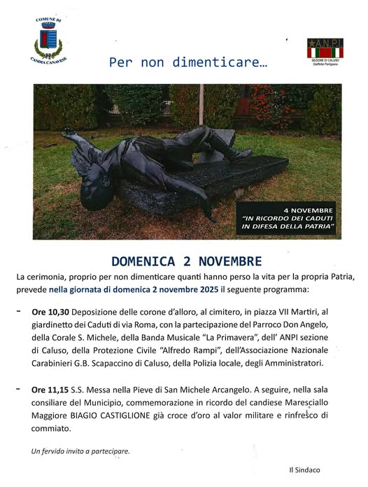 A Candia celebreremo questa importante ricorrenza , domenica 2 novembre, come da programma dell' allegata locandina.