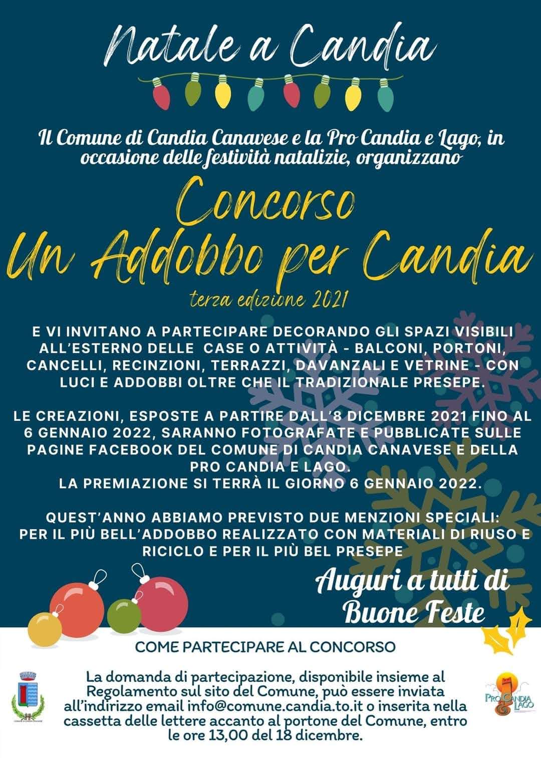 Il Comune di Candia e la Pro Candia e Lago, in occasione delle festività natalizie, organizzano il concorso "Un addobbo per Candia" terza edizione.