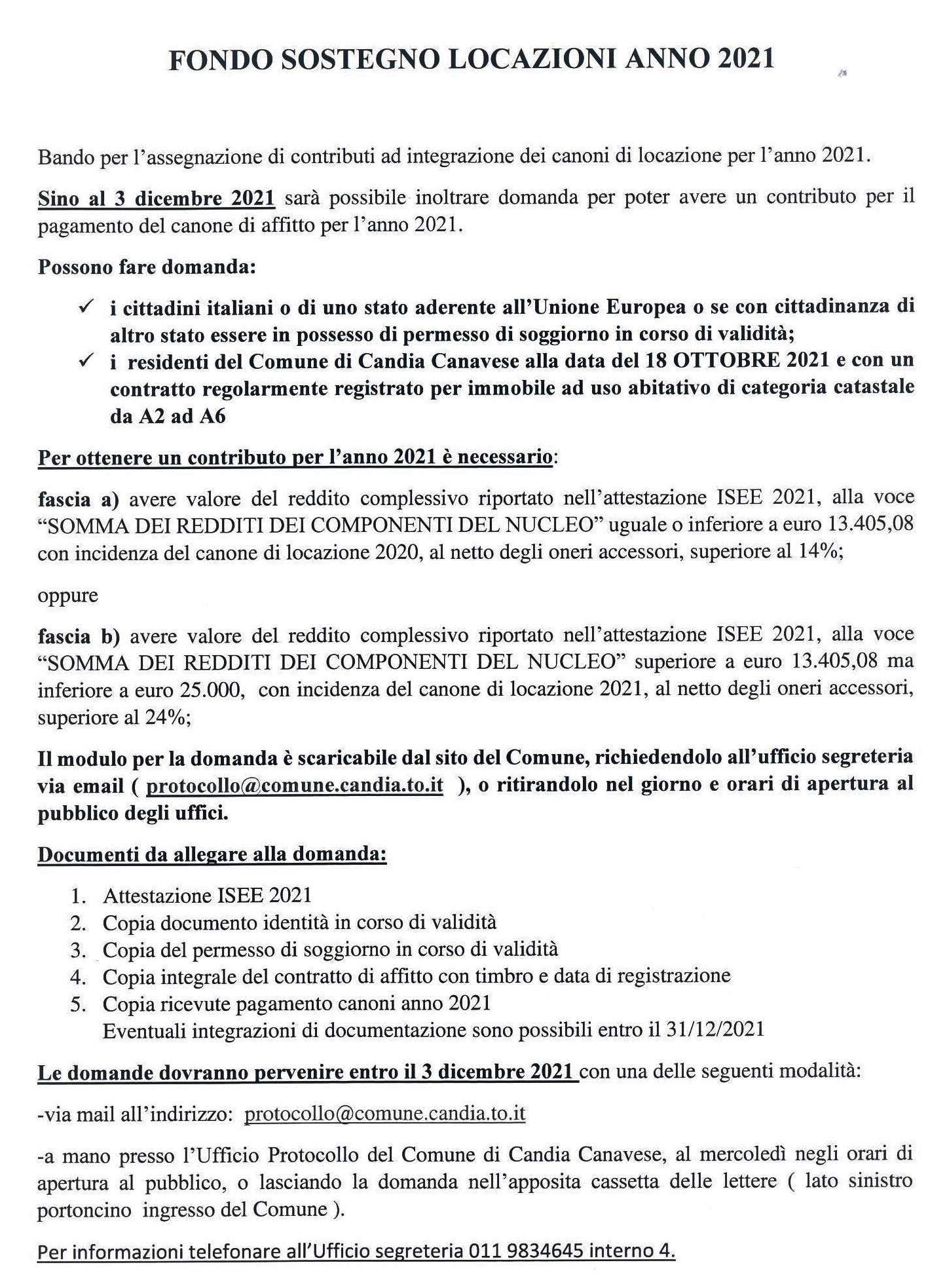 Sino al 3 dicembre 2021 sarà possibile inoltrare domanda per poter avere un contributo per il pagamento del canone di affitto per l’anno 2021.